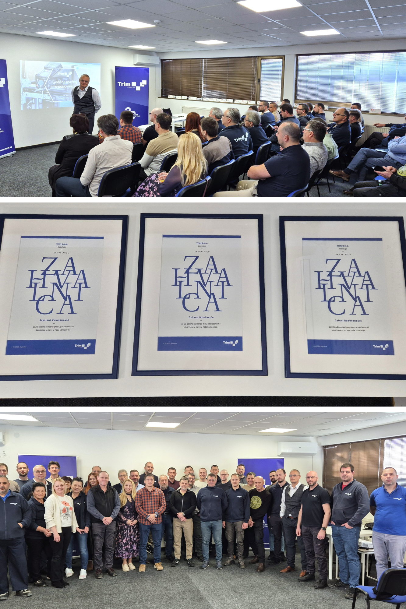 Trim je krajem januara održao tradicionalni godišnji sastanak zaposlenih kako bi sumirao uspehe iz 2024. godine. Nakon toga usledila je dodela jubilarnih nagrada kolegama koji su dve decenije doprinosili rastu i razvoju preduzeća.